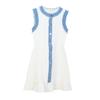 2025 Spring/Summer Elegant Sleeveless Denim Patchwork Dress with Pleated Hem