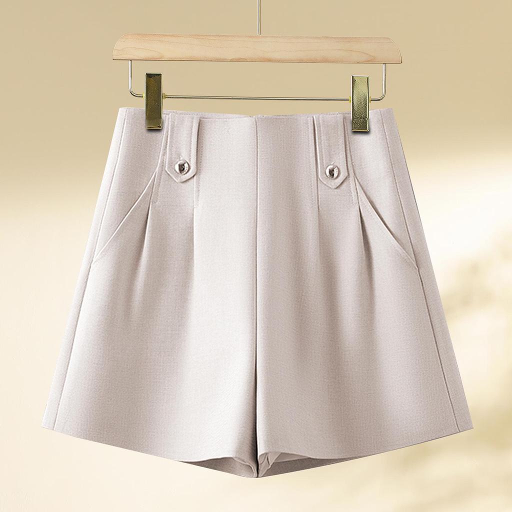 Discover the perfect blend of style and comfort with these women's high-waisted A-line wide-leg casual suit shorts. Crafted from high-quality polyester, these shorts offer a slimming fit that enhances your silhouette. Designed with a chic high waistline and practical pockets, they effortlessly combine functionality with fashion. Their casual style makes them a versatile addition to any wardrobe, ideal for both relaxed and semi-formal occasions. Embrace timeless elegance with these essential shorts for the spring season.