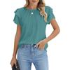 Women's Formal Casual Summer Pleated Short Sleeved Round Neck Top Business Work Shirt