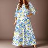 Women's Casual Fashion Floral Print Three-quarter Sleeve Long Dress With Pockets
