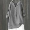 Women Solid Stand Collar Long Sleeve Shirt Casual Loose Blouse Button Down Tops