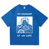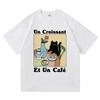 Vintage French Cafe Cat T Shirt Fashion Men/Women Funny Letter Un Croissant Et Un Cafe T-Shirt High Quality Cotton Tees Shirts
