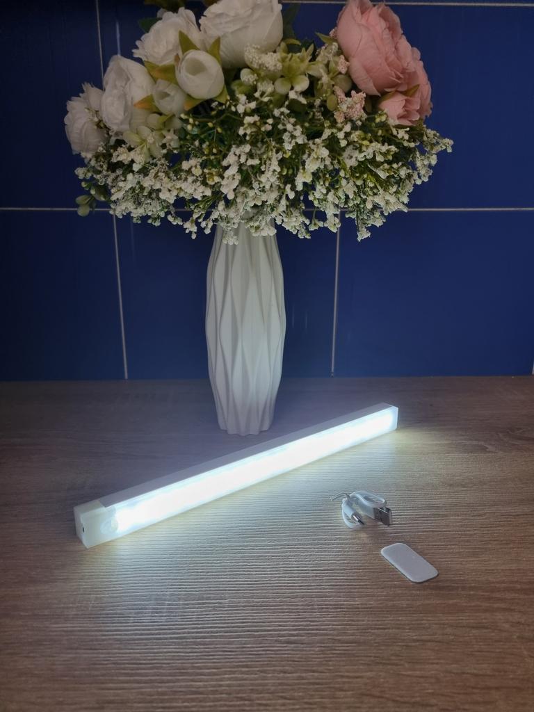 Rechargeable LED light with magnets, which uses magnets for easy installation and repositioning. Energy efficiency: LEDs consume less energy than traditional lighting options. Versatility: the lamp can be easily moved to create different atmospheres or highlight specific areas. Simple installation: built-in magnets allow easy mounting on any metal surface without drilling or wiring. It shines weakly, but it helps a lot now when there is no light.