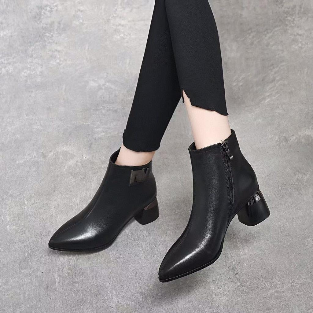Pointed Leather Boots Fashion Boots Autumn and Winter New First-layer Cowhide Temperament Metal Buckle High-heeled Women's Boots