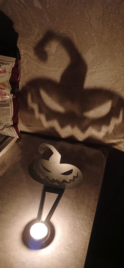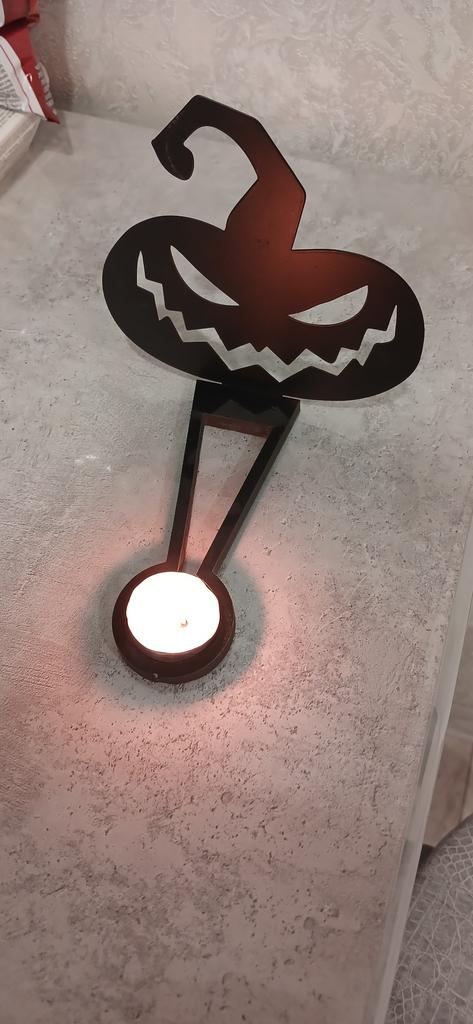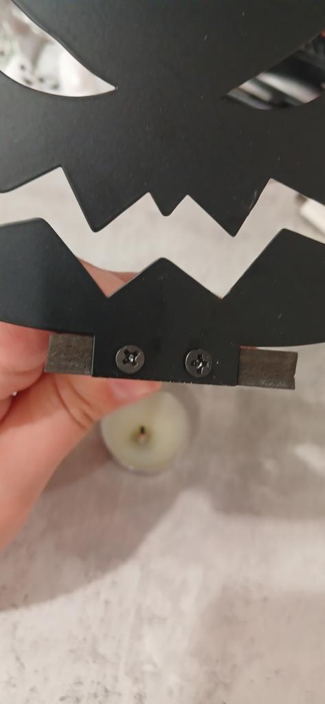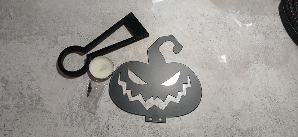 The pumpkin itself is indeed made of metal and well painted. The set includes 2 screws that need to be screwed into the base, and they even included a candle. Thank you very much! It's made very qualitatively for such a price. Immediately the atmosphere of Halloween 👻