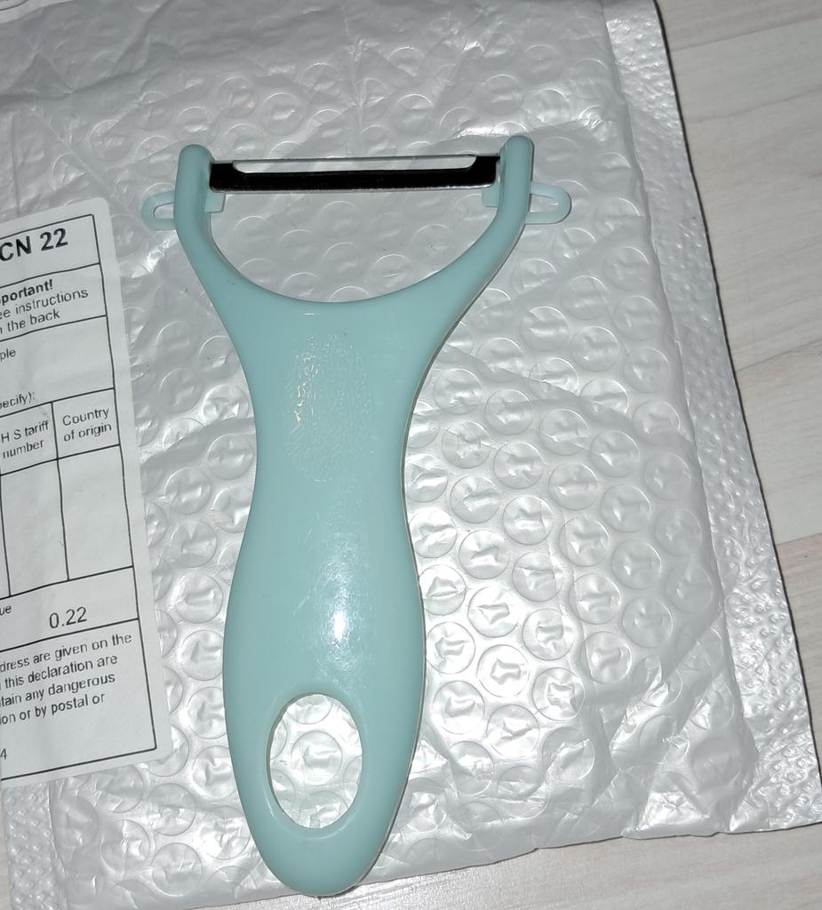 The peeler is good. It was packaged in a postal bag. It arrived without damage. Thank you