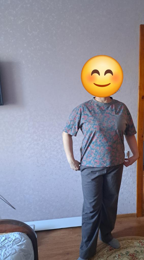 Cotton T-shirt fits to size. I think it will shrink after washing. Therefore, I should have taken one size larger. Overall, I got what I expected. The pattern is not clear but blurry. This is for those who are inattentive. It looks good. Not long. I like it. My daughter says the print is somewhat pajama-like. Quite possible. I like it. I add that the T-shirt is good. It survived the wash on the delicate cycle.
