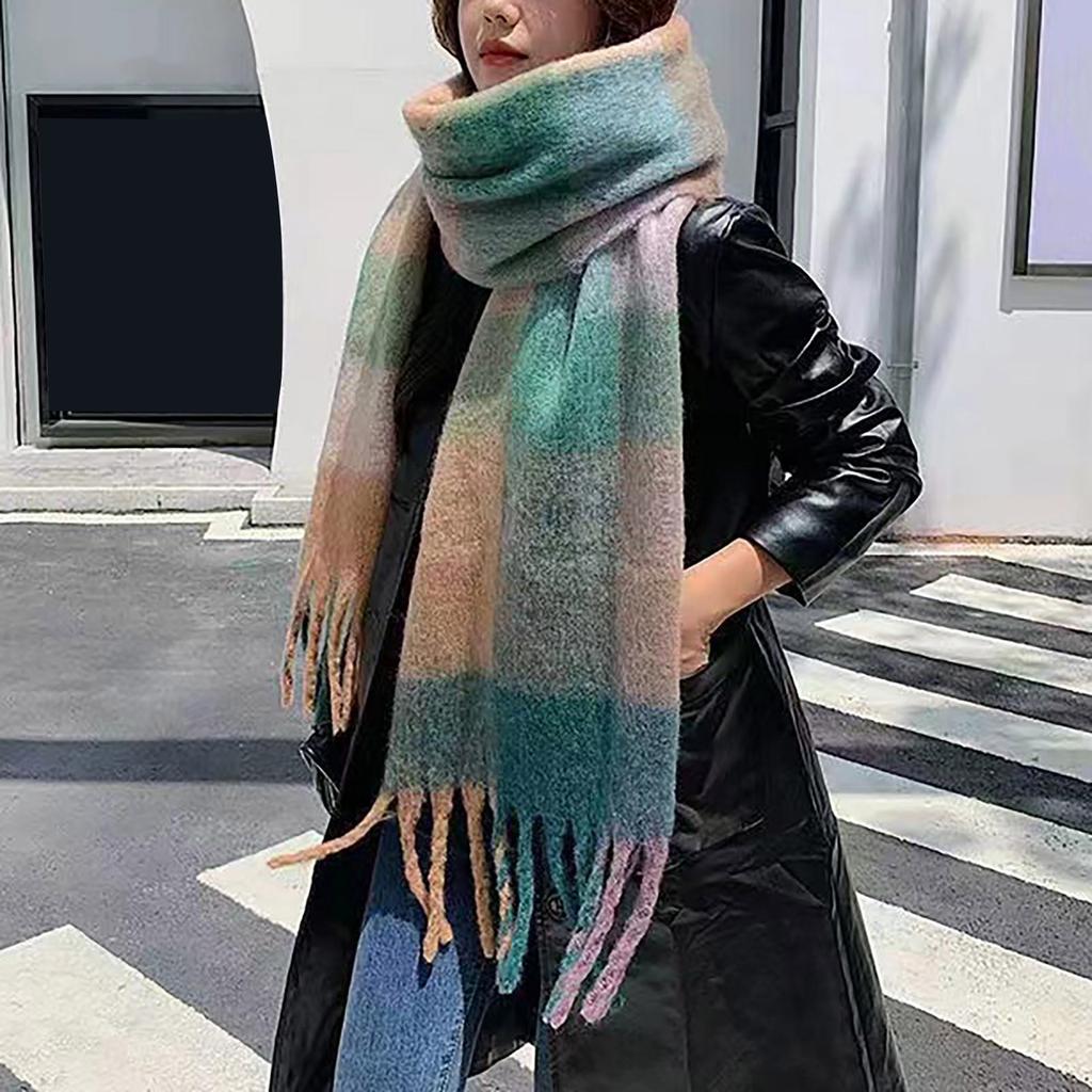 Women's Plaid Scarf Warm Thickening Trend Scarf Shawl Cape