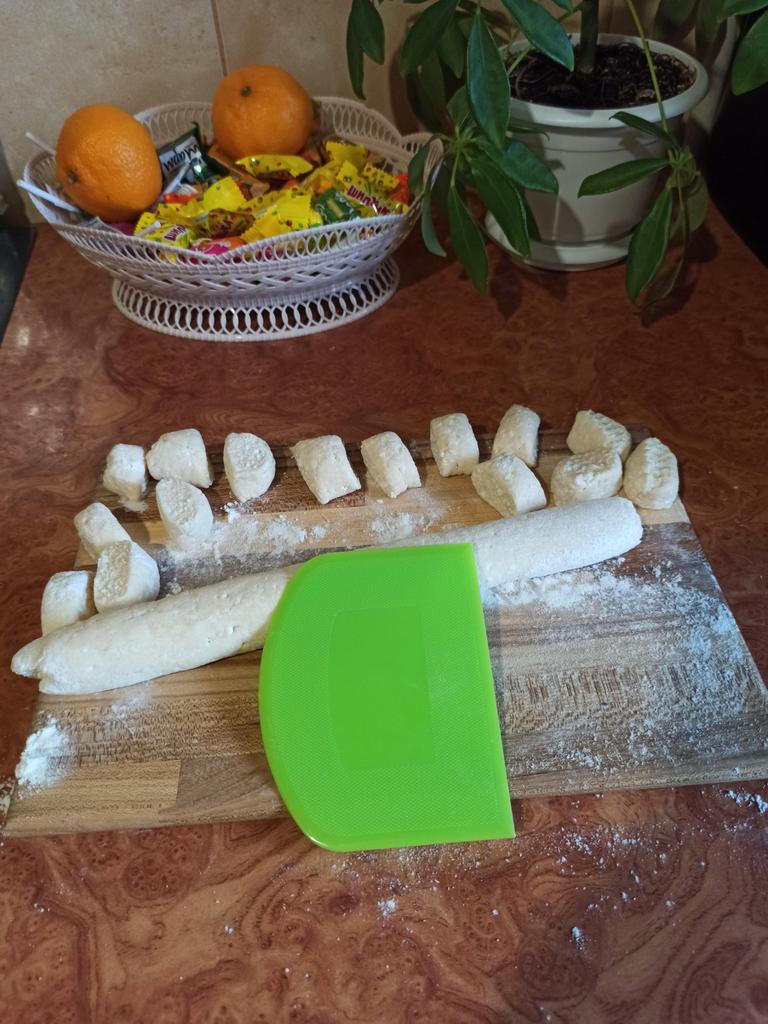 Work with the dough excellently. Not very big cuts in one go