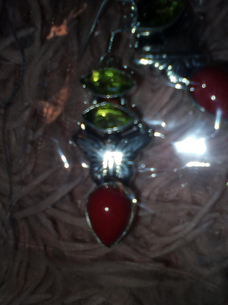Natural Italian Red Coral, Peridot 925 Sterling Silver Earring 2.29" E6I65