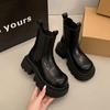 2025 British Retro Chelsea Short Boots 2025 New PU Thick Heel Thick-soled Cigarette Boots Round Martin Boots Tide