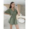 Solid Color Jumpsuit Summer V-neck Fashion Casual Waist Hugging Solid Jumpsuit Women