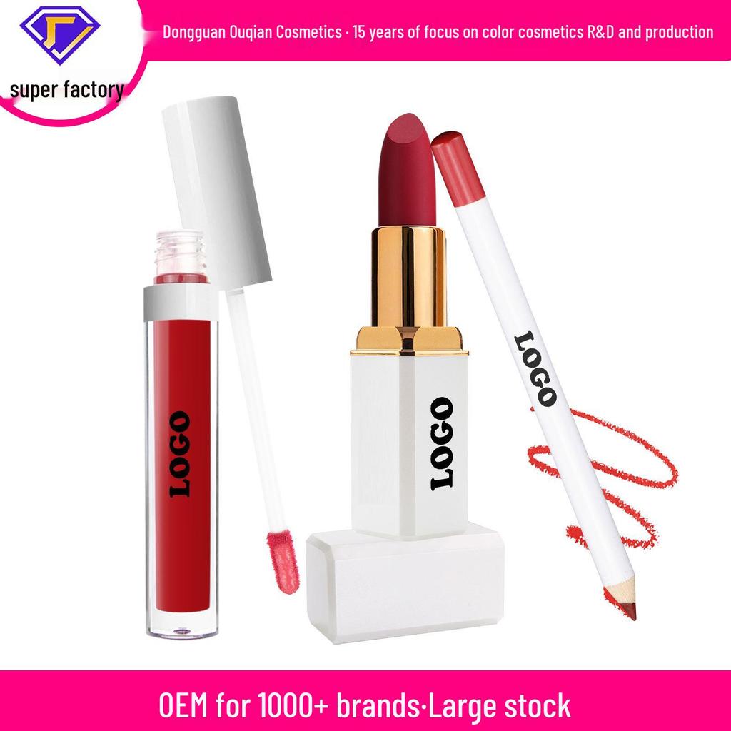 Cross-Border Velvet Matte Lip Set: Long-Lasting, Non-Fading 3-Piece Lip Gloss, Lipstick, and Lip Liner.
