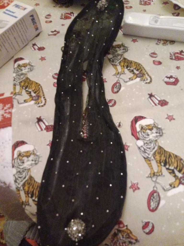 I've wanted such a hair clip for a long time, but I have long hair, and I can't make a bun yet. There's thick wire around the perimeter of the fabric, but you can't see it. There's a slit in the middle for the hair.