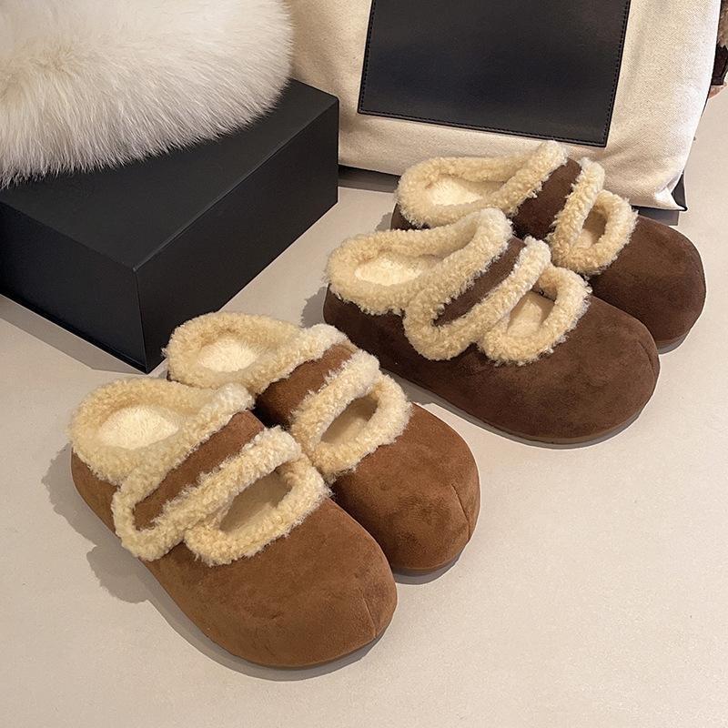 Women's Soft Bottom Large Size Thickened Winter Warm Fur One Padded Lining Ankle Boots Non-slip Baotou Cotton Half Slippers Soybean Shoes