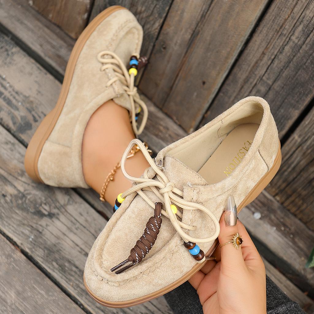 Fashion 2025 New Women Shallow Flat Sneakers Round Toe Lace-up Shoes Women Retro Spring Autumn Lace Up Outdoor Sneakers Zapatos De Mujer