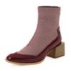 Stylish Women's Square Toe Denim Ankle Boots High Block Wooden Heels Winter Autumn Big Size Ladies Blue Jeans Zipper Short Boots