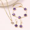 Trendy Five-Leaf Clover Jewelry Set: Necklace, Earrings & Bracelet In Luxury Lace Design