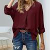 2023 Plus Size Women's Loose V-Neck Long Sleeve Shirt JR921