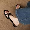 Simple Cross-strap One-word Drag Female 4CM Open-toed Wear Female Drag Cat and Slippers Temperament Half Drag Summer