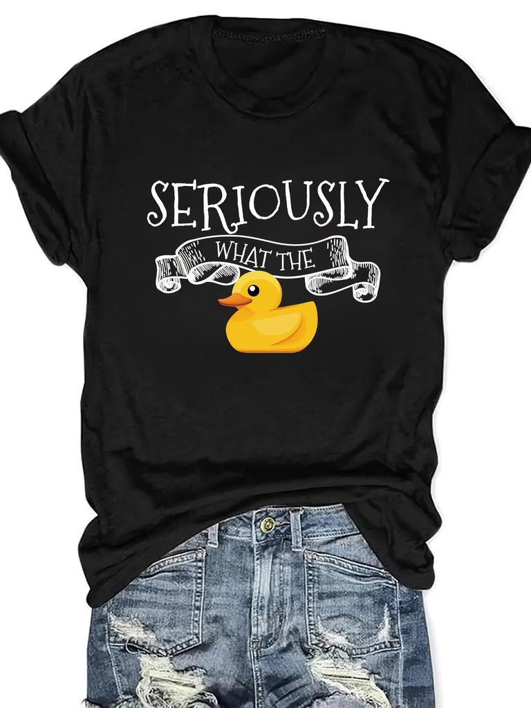 Women'S Casual Crew Neck T-Shirt Polyester Knit Fabric Regular Length with Duck Graphic and Letter Print Animal Pattern
