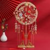 Long Handle Wedding Show Fan Antique Style Decorative Fan Bride Hand Held Fan for Covering Face