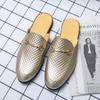 Fashion New Men Gold Black Half Slippers Driving Shoes Casual Patent Leather Mules Moccasins Breathable Loafers Zapatos Hombre
