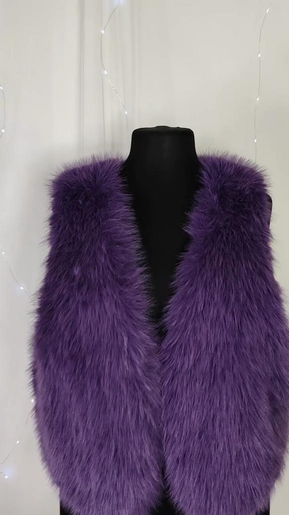 Autumn Winter Faux Fox Fur Vest Short Red Coat for Women Sweet and Warm Tops