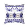 Ethnic Style Sofa Pillow Cover Blue Printed Peach Skin Pillow Cover Office Cushion