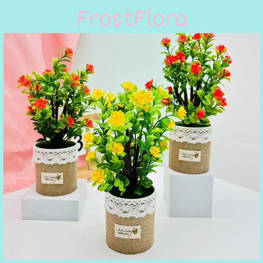 This decorative plant pot features 24 realistic fabric and plastic flowers, designed to enhance wedding or banquet dcor. Made from durable silk cloth and plastic, it measures 10.2 inches high and 5.1 inches wide, providing a vibrant and durable display. Ideal for creating elegant green scenery on balconies or event settings, it requires occasional dusting to maintain its appearance.