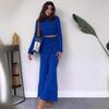 2024 Autumn Knitted Solid Crop Top & High-Waisted Wide-Leg Pants Set