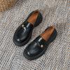 Gold Coin Loafers Women's 2025 Spring New British Style High-end Thick-heeled Small Leather Shoes Sweet and Cool Camellia Single Shoes