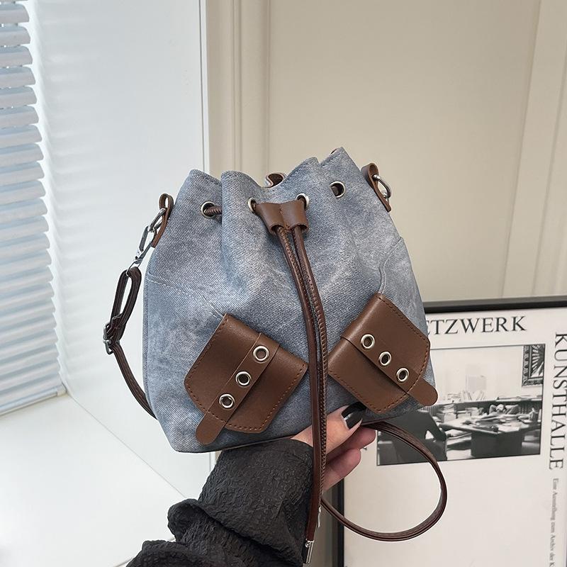 Personalized Simple Messenger Bucket Bag Women's 2025 Autumn New Korean Version Bow Fashion Drawstring Splicing Shoulder Bag
