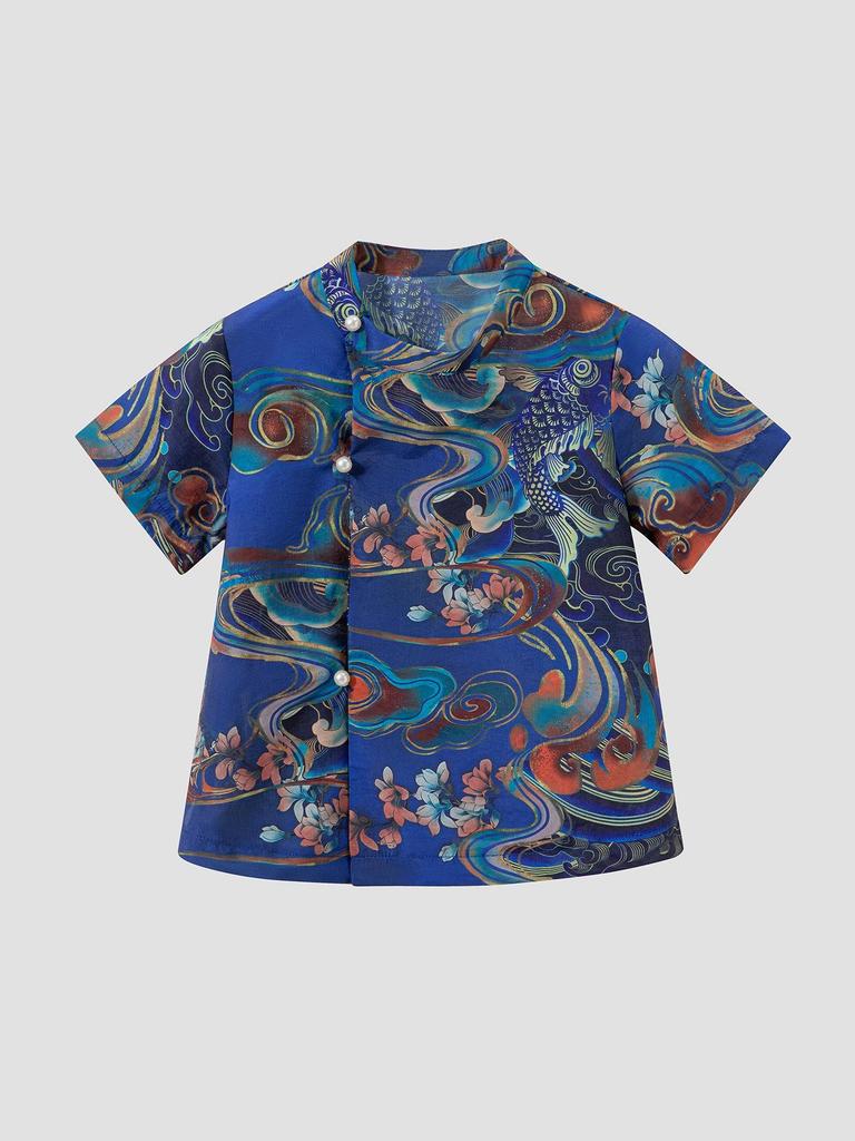 Elevate your child's summer wardrobe with this stylish retro Chinese stand-collar shirt. Crafted from lightweight polyester, it ensures comfort and breathability during warm days. The shirt features a unique frog button design and vibrant prints, offering a modern twist on a classic style. Perfect for casual outings or special occasions, this shirt is a versatile addition to any young fashion enthusiast's collection.