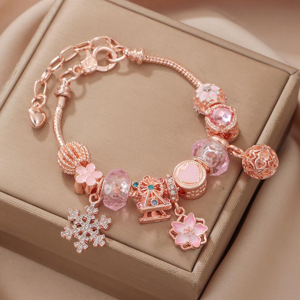Luxury Rose Gold Sakura Snowflake Beaded Bracelet - Valentine's Day Gift