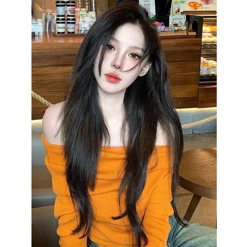Elegant Tangerine One-Shoulder Knit Sweater - Women's Autumn/Winter Long-Sleeve Top