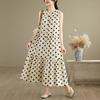 Women's Plus Size Polka Dot Sleeveless Cotton-Linen Dress - French Style