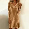 Women's Casual Fashion Long Sleeve Pile Collar Velvet Vintage Long Dresses