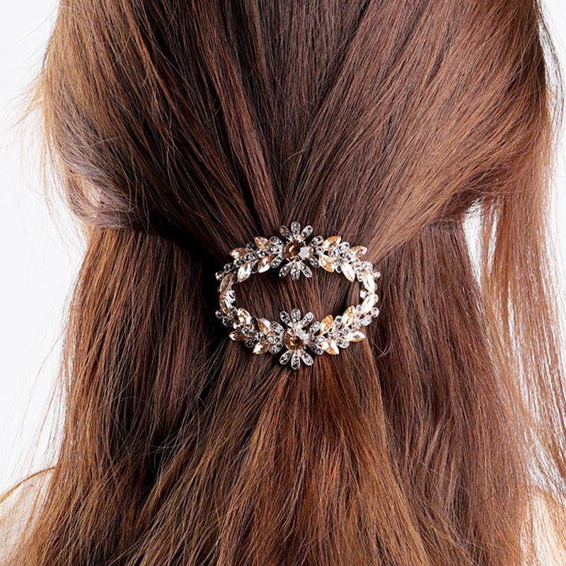 Korean Crystal Flower Hair Clip - Elegant Hollow Spring Barrette