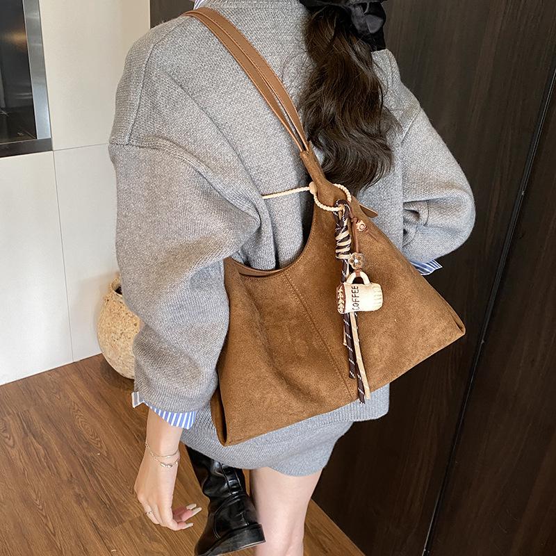 Stylish Suede Retro One-Shoulder Tote: Versatile Large-Capacity Commuter Bag