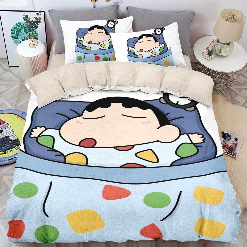 Cartoon Crayon-Shin-Chan Bedding Set Anime Print Shin-Chan Duvet Cover Pillowcase 2/3Pcs Teenagers And Adult Quilt Cover