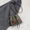 Personalized Simple Messenger Bucket Bag Women's 2025 Autumn New Korean Version Bow Fashion Drawstring Splicing Shoulder Bag