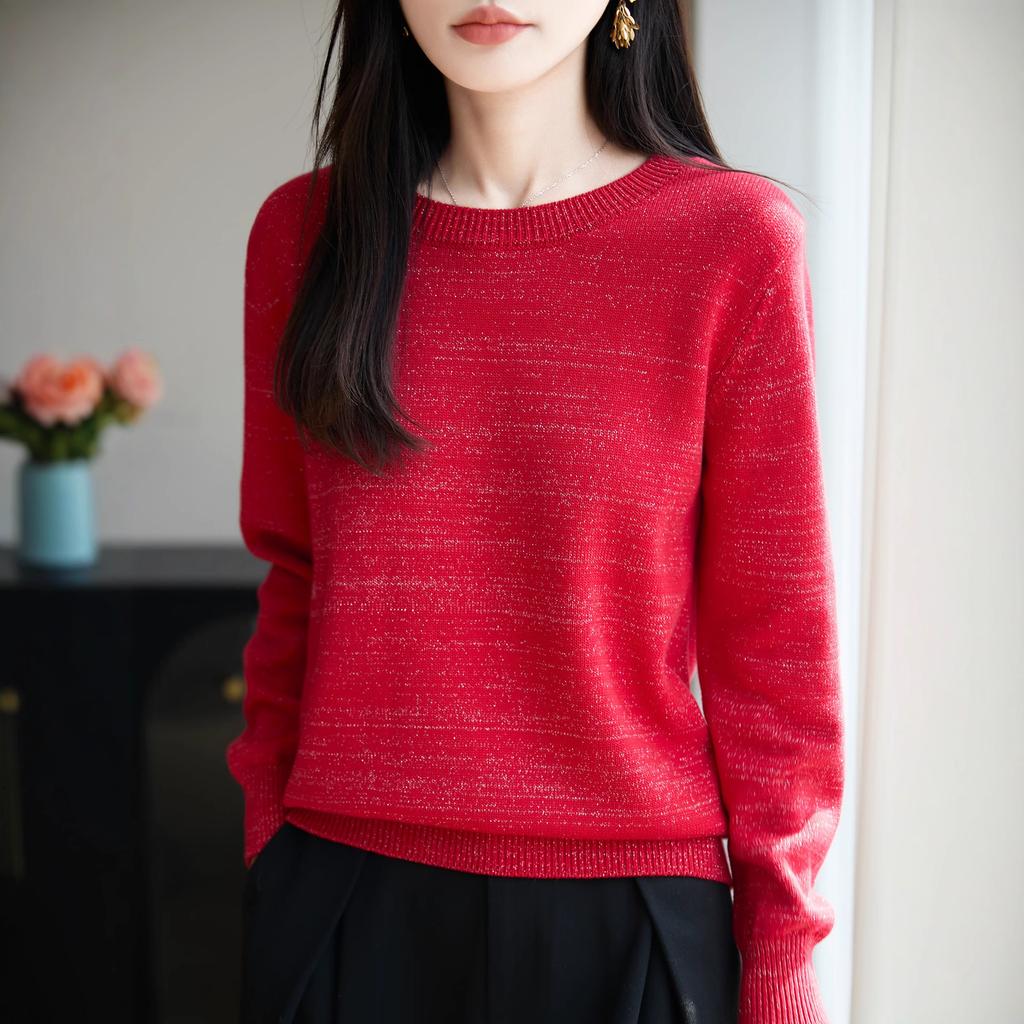 Long-sleeved Base Knitted Sweater for Women, Thick Round Neck, Warm, Loose and Simple Sweater