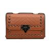The thoughtful construction of this bag speaks to both aesthetics and durability. Its medium size is perfect for carrying essentials while maintaining a sleek silhouette. The exterior features stylish studded details and precise stitching, adding a touch of edginess to its refined appearance. The horizontal square shape, complemented by a secure lock closure, offers not only security but also a unique charm that stands out. Designed with an internal pocket specifically for your smartphone, it ensures that your most important item is always within reach while keeping your belongings organized.