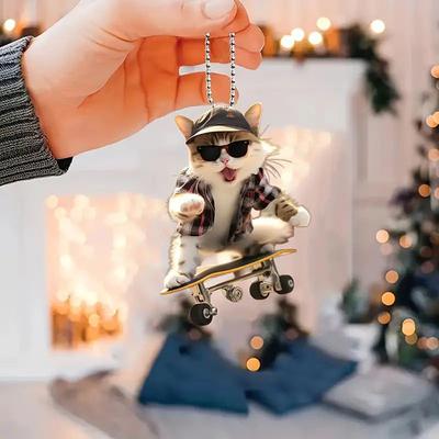 Creative Acrylic Flat 2D Cool Skateboarding Cat Pendant Auto Interior Car Pendant Interior Rearview Mirrors Ornament Car Decora