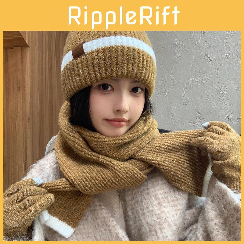 Classic Knit Hat Scarf Gloves Winter Set With Windproof Warmth For Women