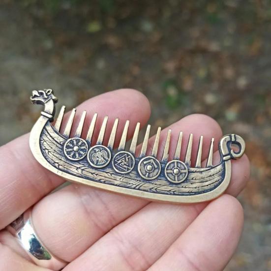 Featuring a handmade aged brass texture and intricate hand-carved details, its retro dragon boat shape and rune carvings offer a unique cultural touch that stands out as an exquisite niche accessory.