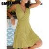 Women Sleeveless V Neck Polka Dot Print Bohemian Beach Casual Summer Dress Robe