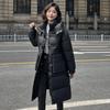 Winter New Horn Buckle Loose Down Cotton Long Women's Padded Hooded Over-the-knee Cotton Coat.