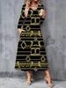 2025 Autumn and Winter New Women Casual Fashion Dress 3D Geometric Pattern Print Long Sleeve V-Neck A-Line Dresses
